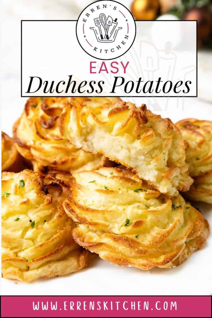 <img loading=“lazy” src=“https://www.errenskitchen.com/wp-content/uploads/2024/12/Duchess-Potatoes--683x1024.jpg" onerror=“this.onerror=null;this.src=‘https://blogger.googleusercontent.com/img/a/AVvXsEhe7F7TRXHtjiKvHb5vS7DmnxvpHiDyoYyYvm1nHB3Qp2_w3BnM6A2eq4v7FYxCC9bfZt3a9vIMtAYEKUiaDQbHMg-ViyGmRIj39MLp0bGFfgfYw1Dc9q_H-T0wiTm3l0Uq42dETrN9eC8aGJ9_IORZsxST1AcLR7np1koOfcc7tnHa4S8Mwz_xD9d0=s16000';" alt=“A plate of crispy, golden Duchess potatoes garnished with herbs in an elegant side dish arrangement. The text reads “Easy Duchess Potatoes” with a logo for Erren’s Kitchen. A website URL is displayed at the bottom. - 1”>