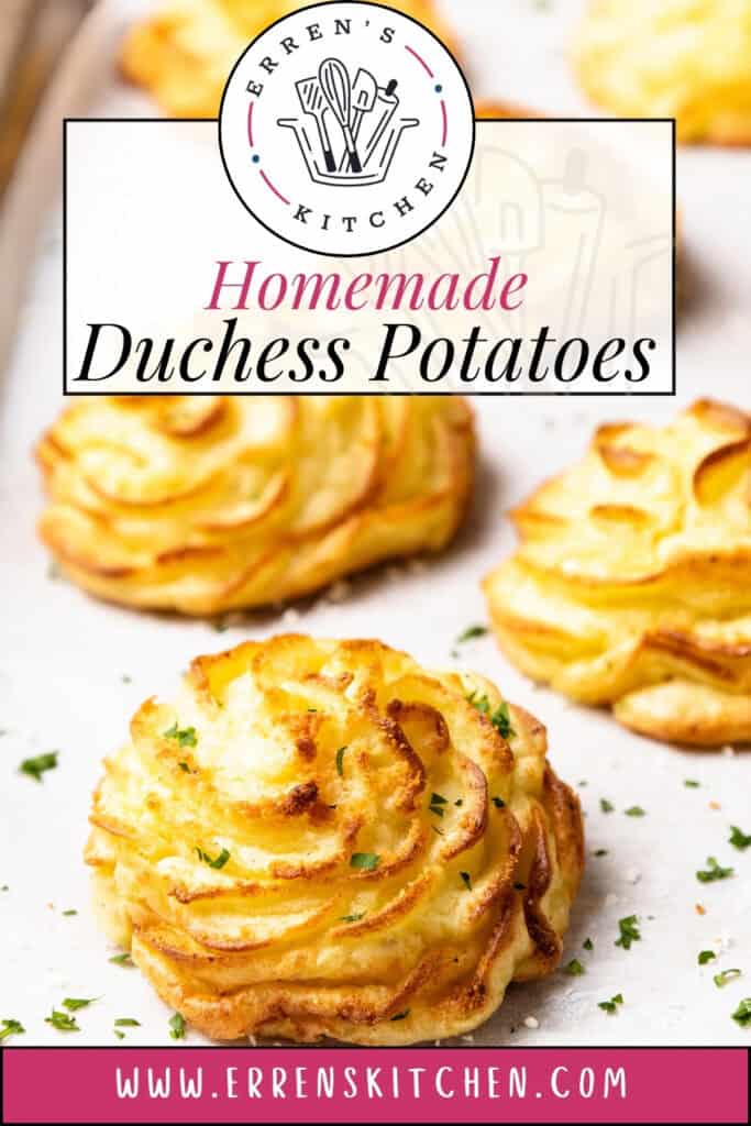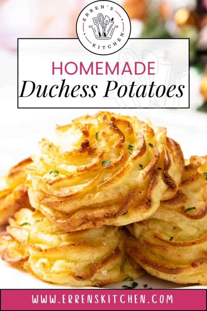 <img loading=“lazy” src=“https://www.errenskitchen.com/wp-content/uploads/2024/12/Duchess-Potatoes-2-683x1024.jpg" onerror=“this.onerror=null;this.src=‘https://blogger.googleusercontent.com/img/a/AVvXsEhe7F7TRXHtjiKvHb5vS7DmnxvpHiDyoYyYvm1nHB3Qp2_w3BnM6A2eq4v7FYxCC9bfZt3a9vIMtAYEKUiaDQbHMg-ViyGmRIj39MLp0bGFfgfYw1Dc9q_H-T0wiTm3l0Uq42dETrN9eC8aGJ9_IORZsxST1AcLR7np1koOfcc7tnHa4S8Mwz_xD9d0=s16000';" alt=“A close-up of duchess potatoes, beautifully piped and golden brown, garnished with fresh herbs. The top part of the image features the text “Homemade Duchess Potatoes” along with a logo above and a website address below. - 3”>