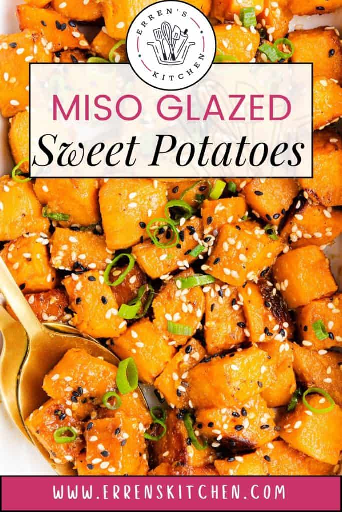 <img loading=“lazy” src=“https://www.errenskitchen.com/wp-content/uploads/2025/09/Miso-Sweet-Potatoes-2-683x1024.jpg" onerror=“this.onerror=null;this.src=‘https://blogger.googleusercontent.com/img/a/AVvXsEhe7F7TRXHtjiKvHb5vS7DmnxvpHiDyoYyYvm1nHB3Qp2_w3BnM6A2eq4v7FYxCC9bfZt3a9vIMtAYEKUiaDQbHMg-ViyGmRIj39MLp0bGFfgfYw1Dc9q_H-T0wiTm3l0Uq42dETrN9eC8aGJ9_IORZsxST1AcLR7np1koOfcc7tnHa4S8Mwz_xD9d0=s16000';" alt=“Close-up of Glazed Miso Sweet Potatoes coated in a glossy miso glaze, topped with green onions and sesame seeds. A gold fork peeks in, while a text overlay reads “Miso Glazed Sweet Potatoes. - 1”>