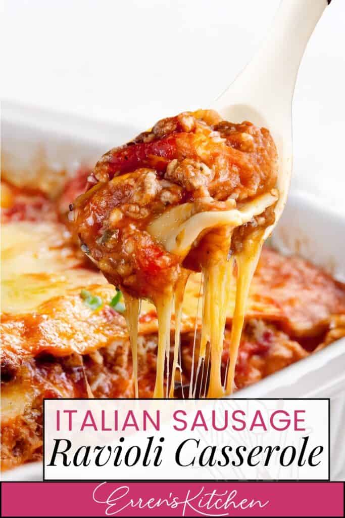 <img loading=“lazy” src=“https://www.errenskitchen.com/wp-content/uploads/2025/01/Italian-Sausage-Ravioli-Casserole-3-683x1024.jpg" onerror=“this.onerror=null;this.src=‘https://blogger.googleusercontent.com/img/a/AVvXsEhe7F7TRXHtjiKvHb5vS7DmnxvpHiDyoYyYvm1nHB3Qp2_w3BnM6A2eq4v7FYxCC9bfZt3a9vIMtAYEKUiaDQbHMg-ViyGmRIj39MLp0bGFfgfYw1Dc9q_H-T0wiTm3l0Uq42dETrN9eC8aGJ9_IORZsxST1AcLR7np1koOfcc7tnHa4S8Mwz_xD9d0=s16000';" alt=“A close-up of a spoon lifting a serving of ravioli casserole, brimming with Italian sausage, melted cheese, and rich tomato sauce. Nestled in a white dish, it tempts the taste buds. Text overlay at the bottom reads: “Italian Sausage Ravioli Casserole - Erren’s Kitchen. - 1”>