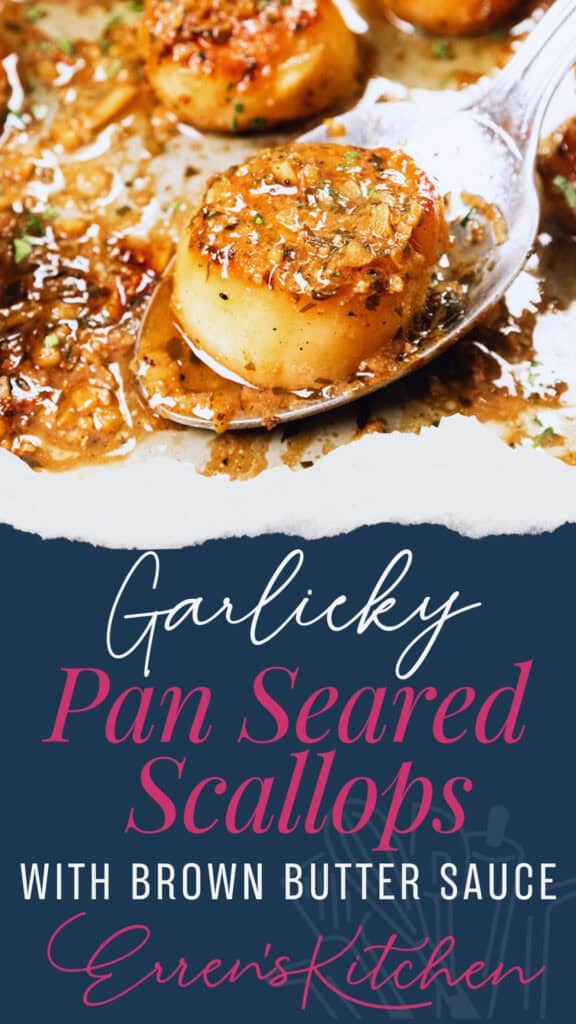 <img loading=“lazy” src=“https://www.errenskitchen.com/wp-content/uploads/2025/03/Pan-Seared-Scallops-with-Brown-Butter-Sauce-576x1024.jpg" onerror=“this.onerror=null;this.src=‘https://blogger.googleusercontent.com/img/a/AVvXsEhe7F7TRXHtjiKvHb5vS7DmnxvpHiDyoYyYvm1nHB3Qp2_w3BnM6A2eq4v7FYxCC9bfZt3a9vIMtAYEKUiaDQbHMg-ViyGmRIj39MLp0bGFfgfYw1Dc9q_H-T0wiTm3l0Uq42dETrN9eC8aGJ9_IORZsxST1AcLR7np1koOfcc7tnHa4S8Mwz_xD9d0=s16000';" alt=“Close-up of garlic pan-seared scallops in a luscious brown butter sauce, garnished with herbs. A spoon lifts a perfectly seared scallop, showcasing its golden-brown crust. Text overlay reads: “Scallops with Brown Butter Sauce - Erren’s Kitchen. - 1”>