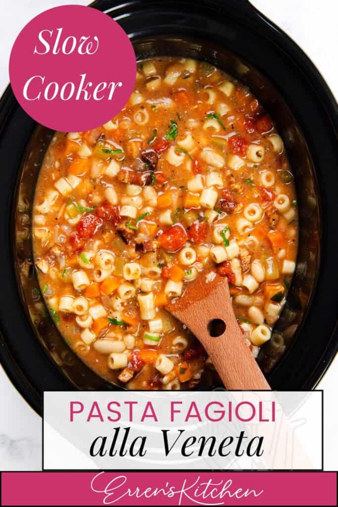 <img loading=“lazy” src=“https://www.errenskitchen.com/wp-content/uploads/2025/02/Pasta-Fagioli-alla-Veneta-3-683x1024.jpg" onerror=“this.onerror=null;this.src=‘https://blogger.googleusercontent.com/img/a/AVvXsEhe7F7TRXHtjiKvHb5vS7DmnxvpHiDyoYyYvm1nHB3Qp2_w3BnM6A2eq4v7FYxCC9bfZt3a9vIMtAYEKUiaDQbHMg-ViyGmRIj39MLp0bGFfgfYw1Dc9q_H-T0wiTm3l0Uq42dETrN9eC8aGJ9_IORZsxST1AcLR7np1koOfcc7tnHa4S8Mwz_xD9d0=s16000';" alt=“A slow cooker filled with Pasta Fagioli alla Veneta, showcasing small pasta, beans, and tomatoes in a savory broth. A wooden spoon rests inside. A pink circle in the corner reads “Slow Cooker” while “Authentic Italian Recipe” is elegantly labeled below. - 3”>