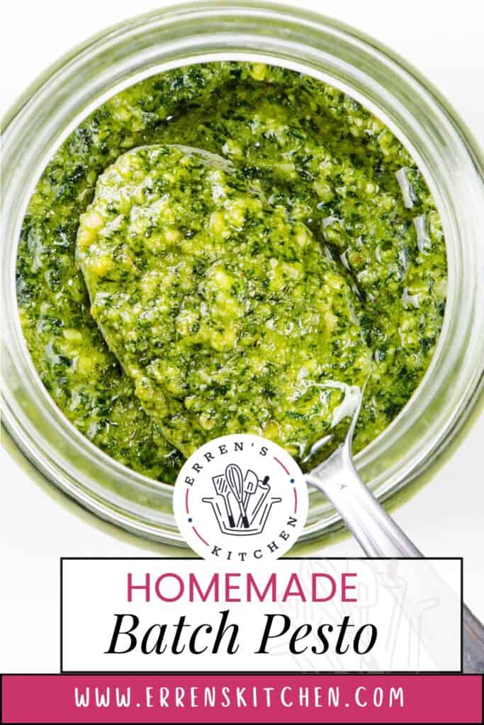 <img loading=“lazy” src=“https://www.errenskitchen.com/wp-content/uploads/2025/01/Pesto-3-683x1024.jpg" onerror=“this.onerror=null;this.src=‘https://blogger.googleusercontent.com/img/a/AVvXsEhe7F7TRXHtjiKvHb5vS7DmnxvpHiDyoYyYvm1nHB3Qp2_w3BnM6A2eq4v7FYxCC9bfZt3a9vIMtAYEKUiaDQbHMg-ViyGmRIj39MLp0bGFfgfYw1Dc9q_H-T0wiTm3l0Uq42dETrN9eC8aGJ9_IORZsxST1AcLR7np1koOfcc7tnHa4S8Mwz_xD9d0=s16000';" alt=“A jar of quick and easy homemade pesto with a spoon, paired with a forkful of pasta swirled in sauce, topped with grated cheese. Text reads “Batch Pesto” and “Erren’s Kitchen”. - 2”>