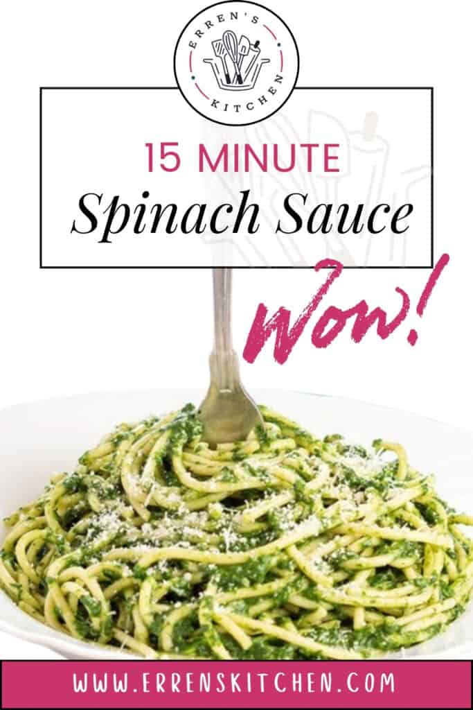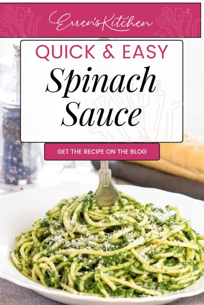 <img loading=“lazy” src=“https://www.errenskitchen.com/wp-content/uploads/2018/08/Spinach-Sauce-Pin-683x1024.jpg" onerror=“this.onerror=null;this.src=‘https://blogger.googleusercontent.com/img/a/AVvXsEhe7F7TRXHtjiKvHb5vS7DmnxvpHiDyoYyYvm1nHB3Qp2_w3BnM6A2eq4v7FYxCC9bfZt3a9vIMtAYEKUiaDQbHMg-ViyGmRIj39MLp0bGFfgfYw1Dc9q_H-T0wiTm3l0Uq42dETrN9eC8aGJ9_IORZsxST1AcLR7np1koOfcc7tnHa4S8Mwz_xD9d0=s16000';" alt=“A fork twirling spaghetti with a thick, green spinach sauce on a white plate, with pink text “QUICK & EASY Spinach Sauce” and a call to action “GET THE RECIPE ON THE BLOG” on a pink background. - 50”>