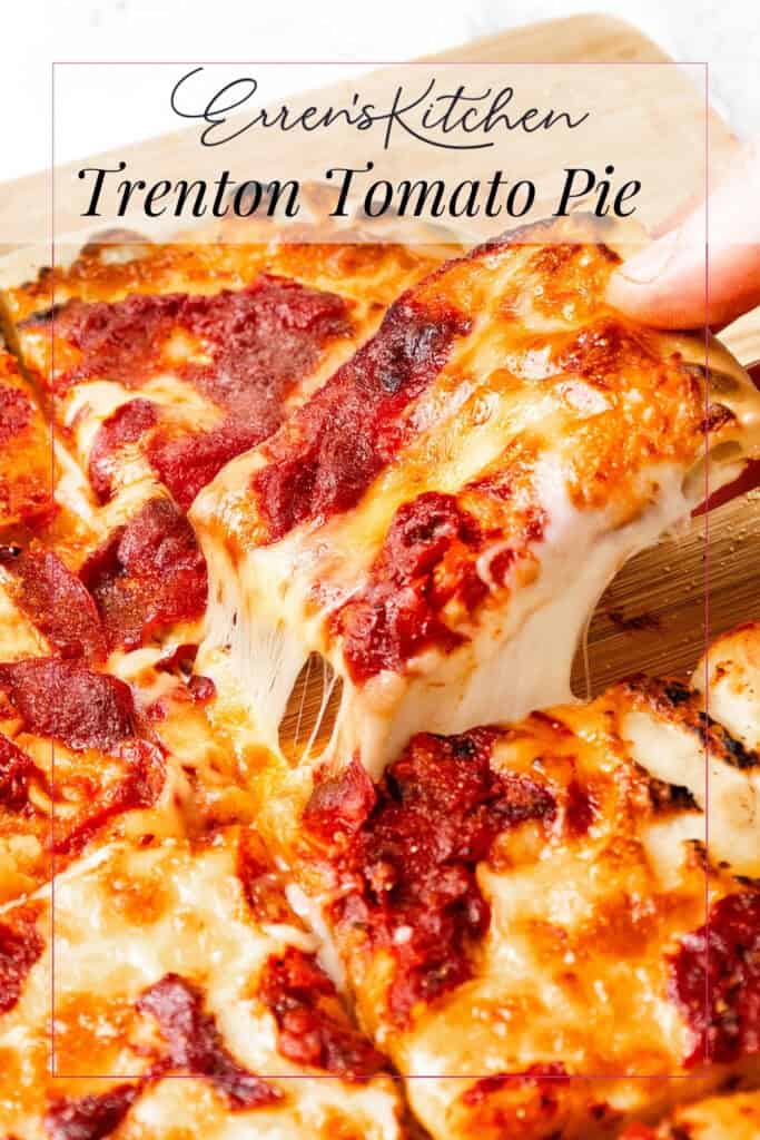 <img loading=“lazy” src=“https://www.errenskitchen.com/wp-content/uploads/2025/05/Trenton-tomato-pie-7-683x1024.jpg" onerror=“this.onerror=null;this.src=‘https://blogger.googleusercontent.com/img/a/AVvXsEhe7F7TRXHtjiKvHb5vS7DmnxvpHiDyoYyYvm1nHB3Qp2_w3BnM6A2eq4v7FYxCC9bfZt3a9vIMtAYEKUiaDQbHMg-ViyGmRIj39MLp0bGFfgfYw1Dc9q_H-T0wiTm3l0Uq42dETrN9eC8aGJ9_IORZsxST1AcLR7np1koOfcc7tnHa4S8Mwz_xD9d0=s16000';" alt=“Close-up of a cheesy Trenton Tomato Pie pizza with a hand lifting a slice, showcasing gooey melted cheese and rich tomato sauce on a wooden board. Text overlay reads “Erren’s Kitchen Trenton Tomato Pie. - 1”>